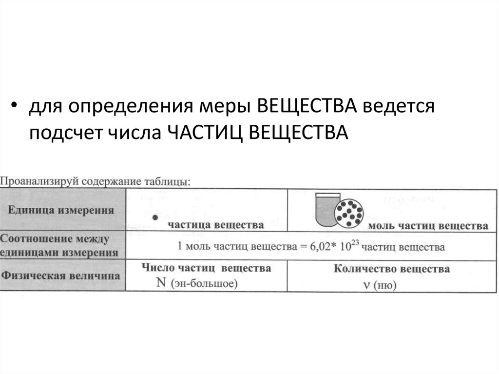 • для определения меры ВЕЩЕСТВА ведетсяподсчет числа ЧАСТИЦ ВЕЩЕСТВА