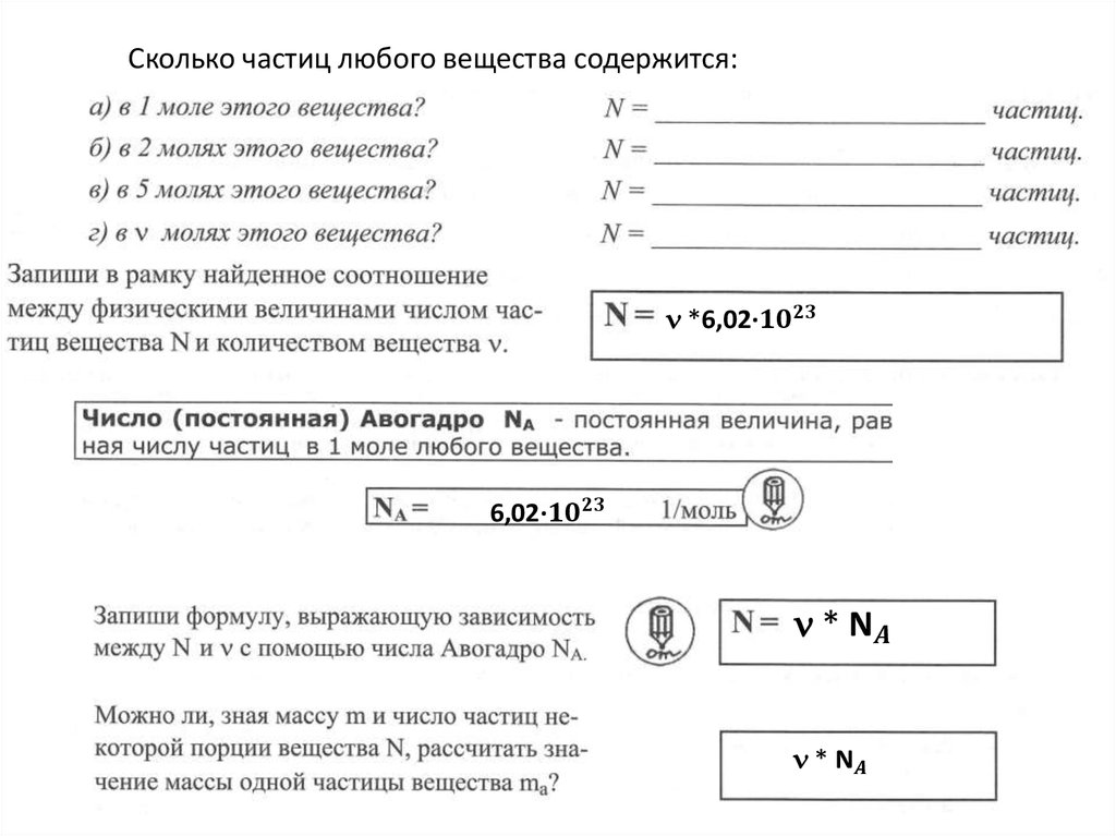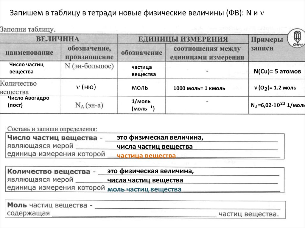 Запишем в таблицу в тетради новые физические величины (ФВ): N иЧисло частиц