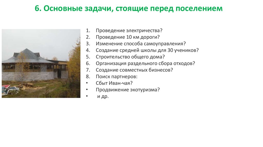 6. Основные задачи, стоящие перед поселением1.