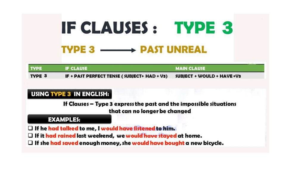 Conditionals. There are 4 kinds of conditionals