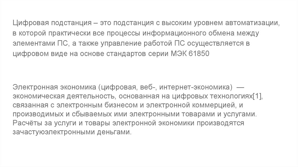 Цифровая подстанция – это подстанция с высоким уровнем автоматизации,в которой практически все процессы информационного обмена между