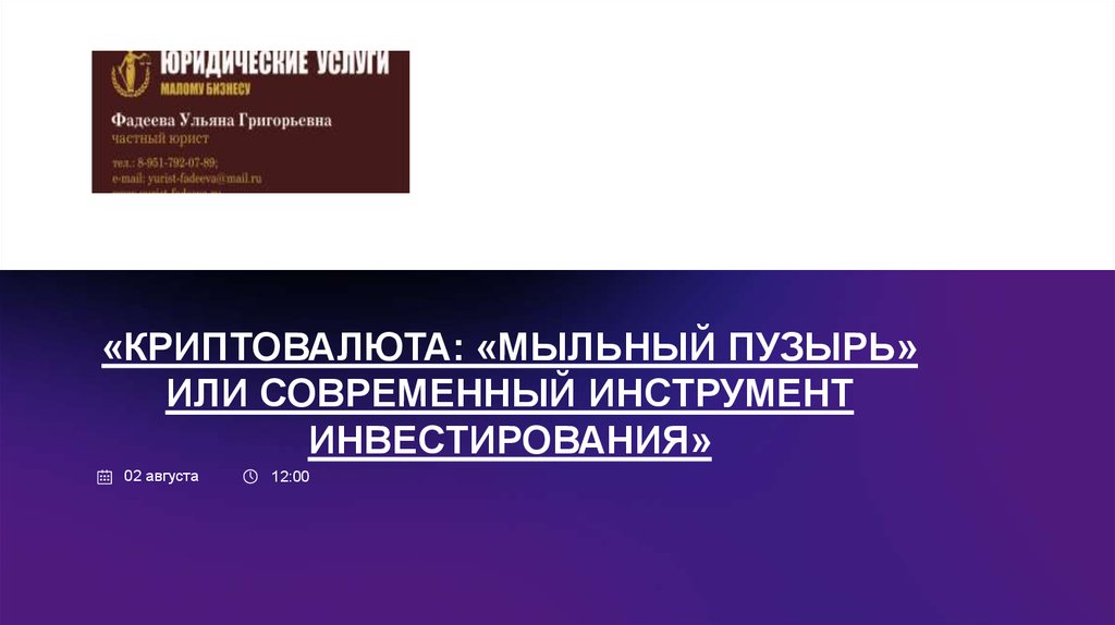 1. «КРИПТОВАЛЮТА: «МЫЛЬНЫЙ ПУЗЫРЬ» ИЛИ СОВРЕМЕННЫЙ ИНСТРУМЕНТ ИНВЕСТИРОВАНИЯ»