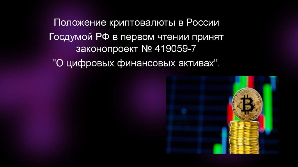 Положение криптовалюты в РоссииГосдумой РФ в первом чтении принят