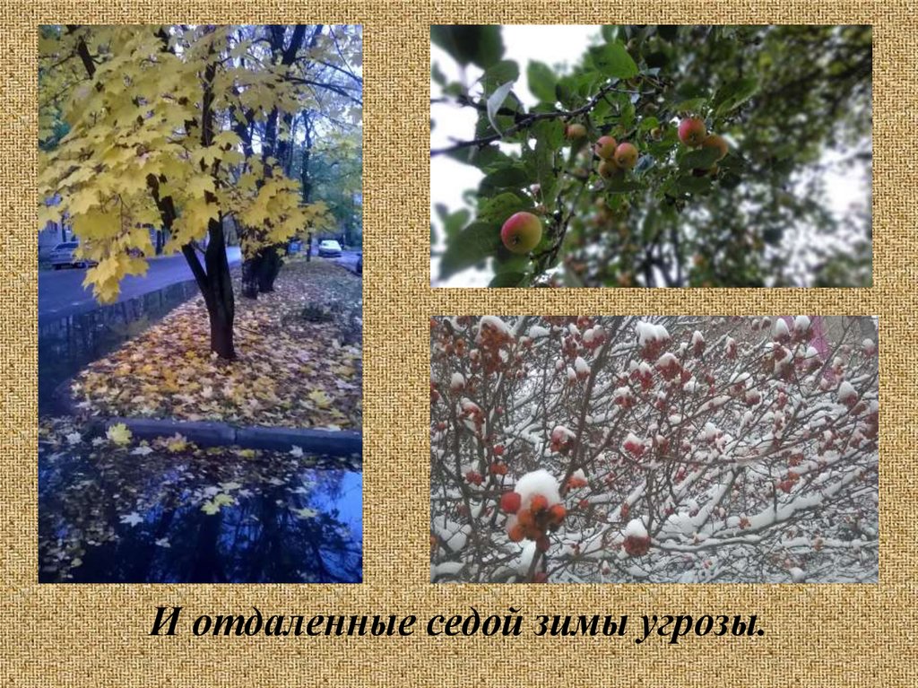И отдаленные седой зимы угрозы.