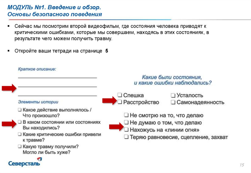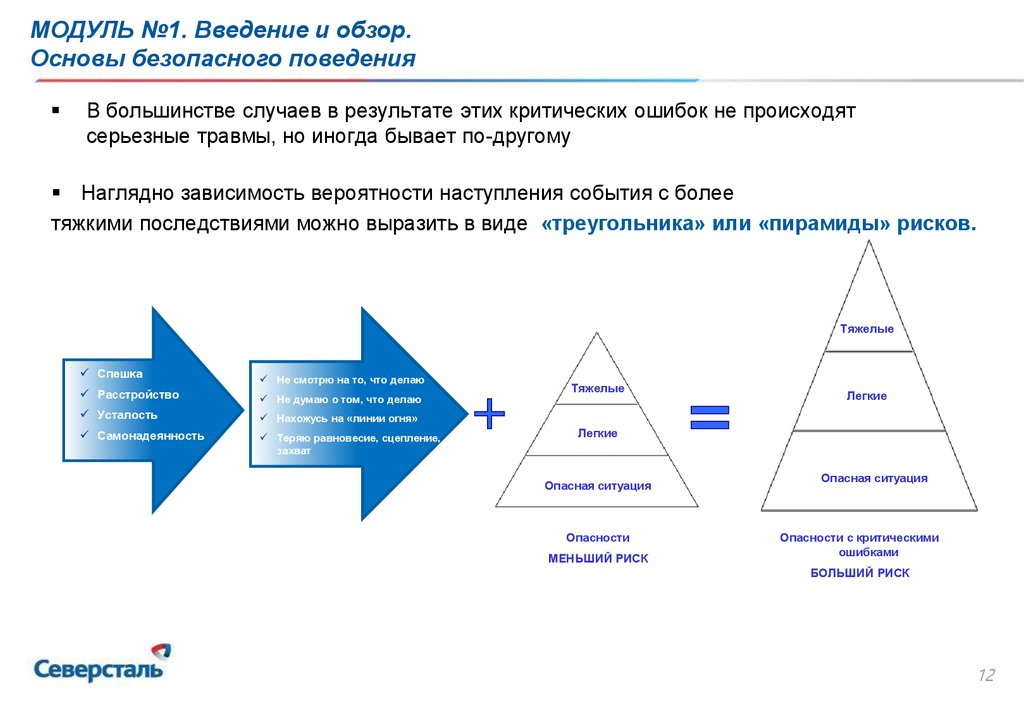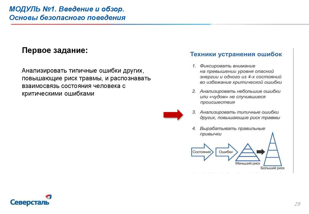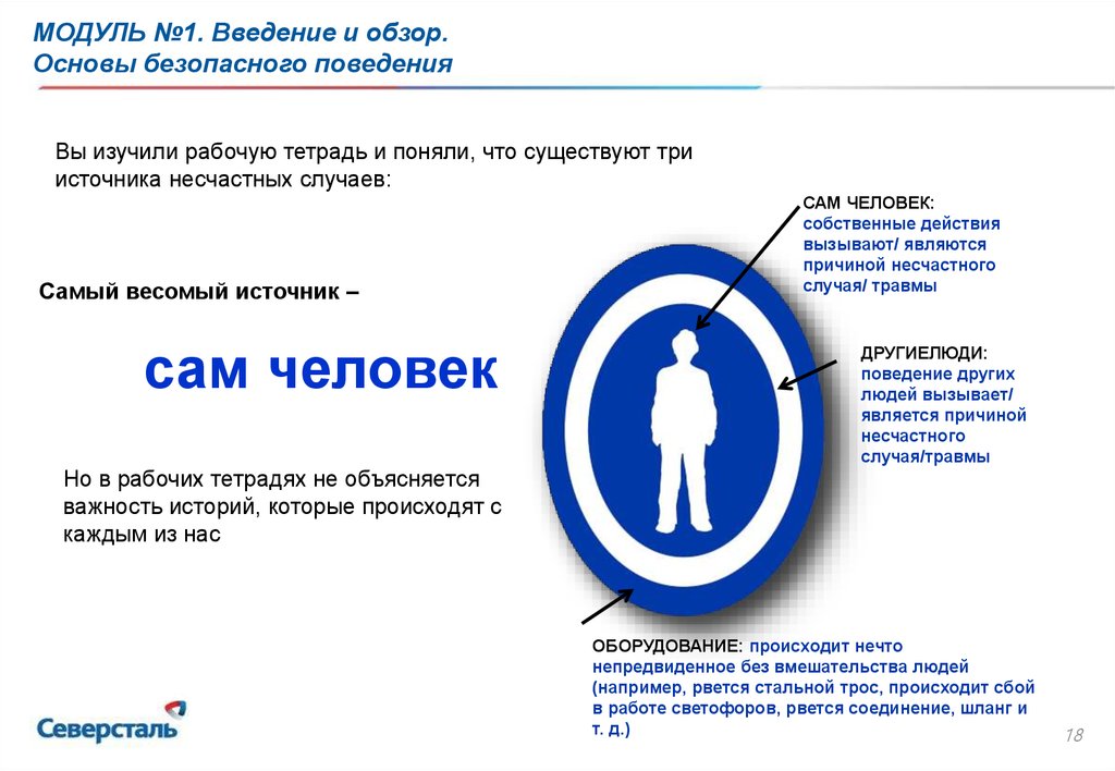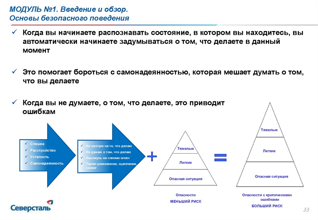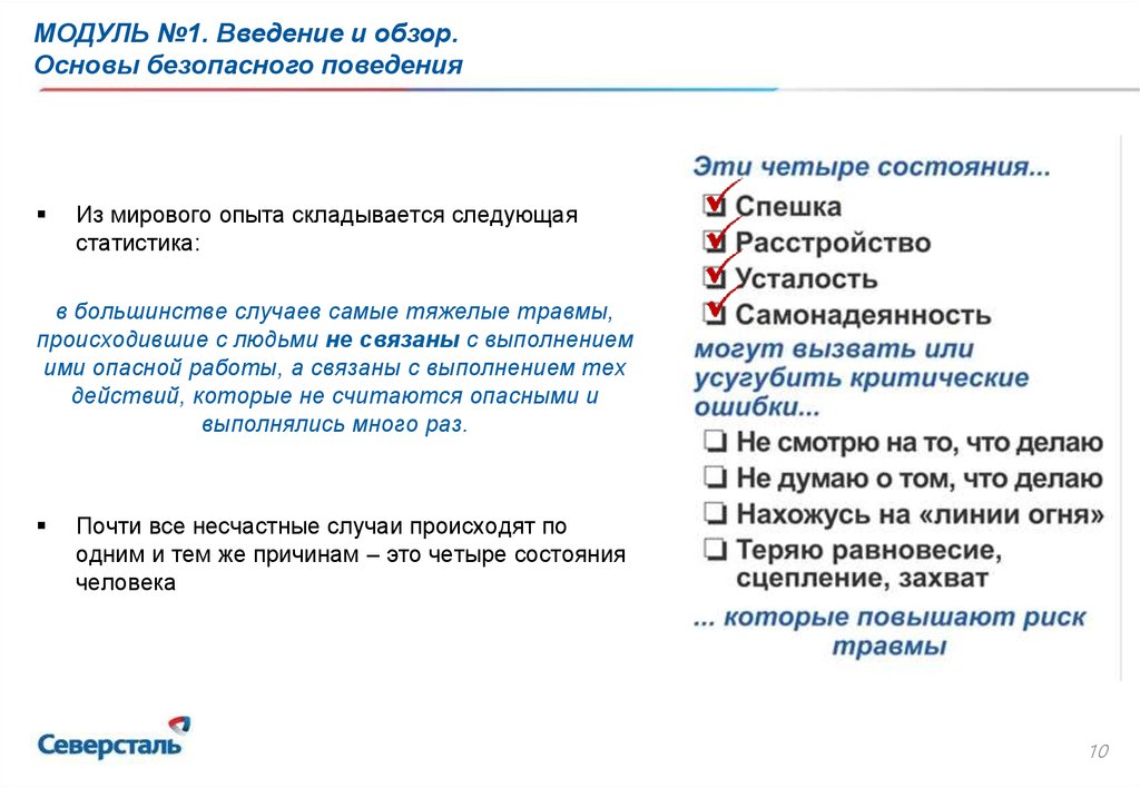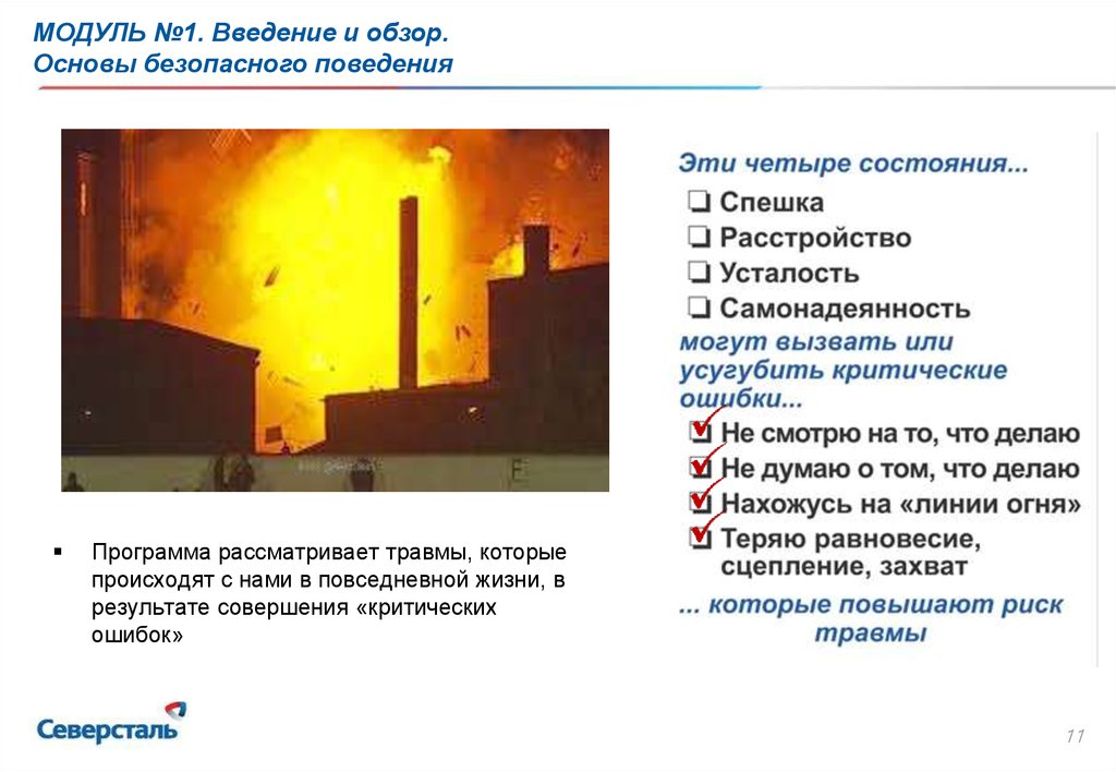 безопасного поведения» в ПАО «Северсталь» снижение количества травм на 50 %.