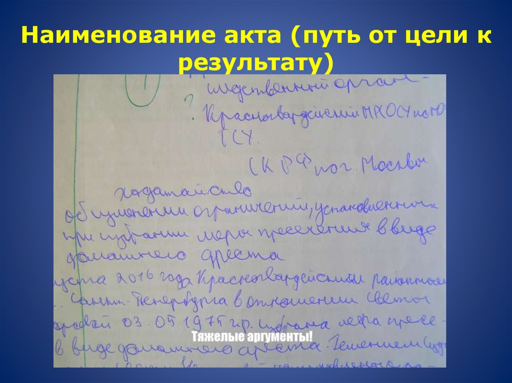 Наименование акта (путь от цели крезультату)
