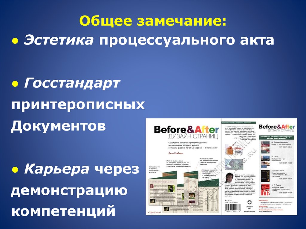 Общее замечание:● Эстетика процессуального акта