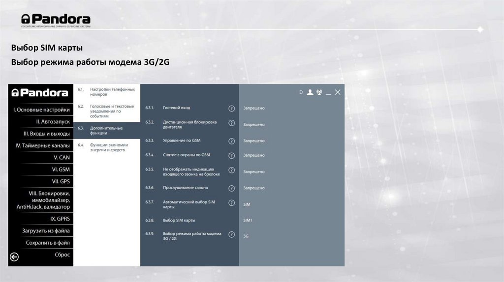 Выбор SIM картыВыбор режима работы модема 3G/2G