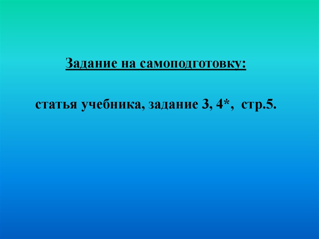 Задание на самоподготовку:статья учебника, задание 3, 4*, стр.5.