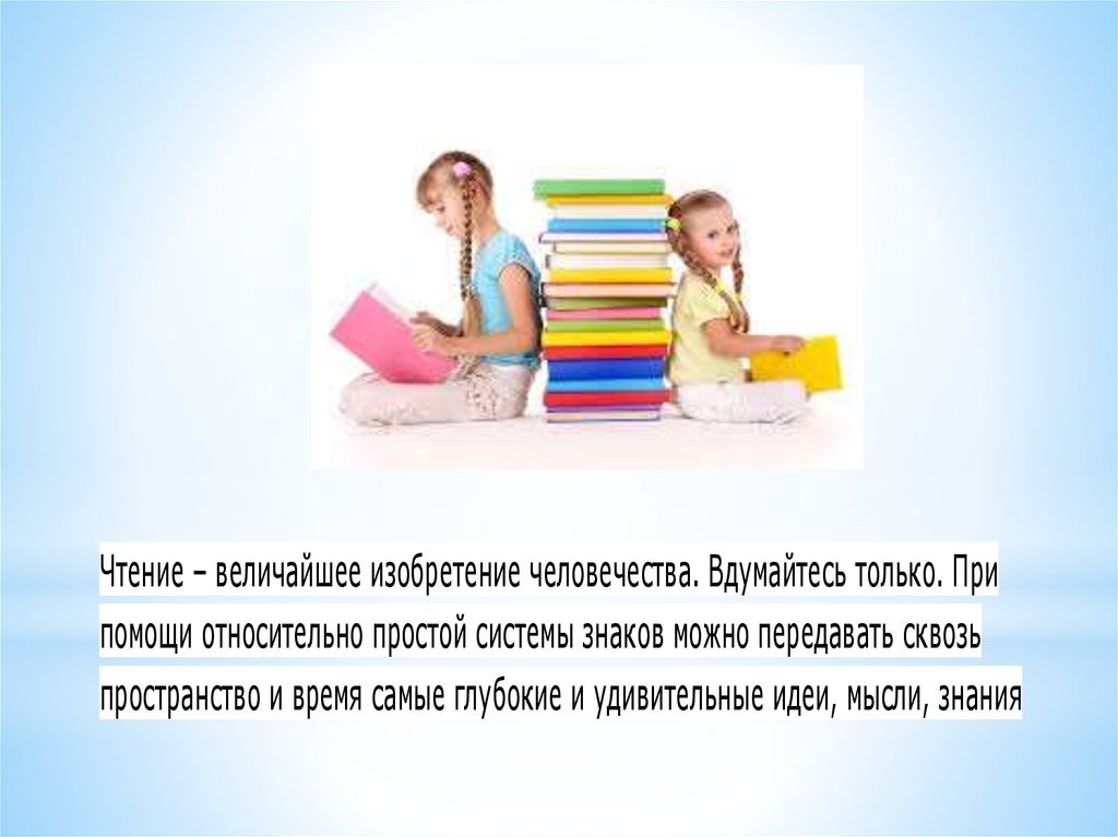 Чтение – величайшее изобретение человечества. Вдумайтесь только. Припомощи относительно простой системы знаков можно передавать сквозь