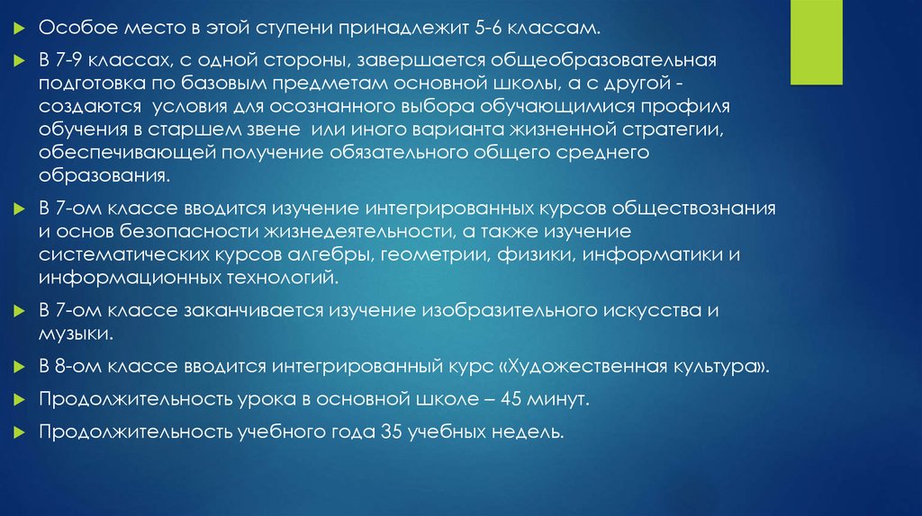 Особое место в этой ступени принадлежит 5-6 классам.В 7-9 классах, с одной стороны, завершается общеобразовательная