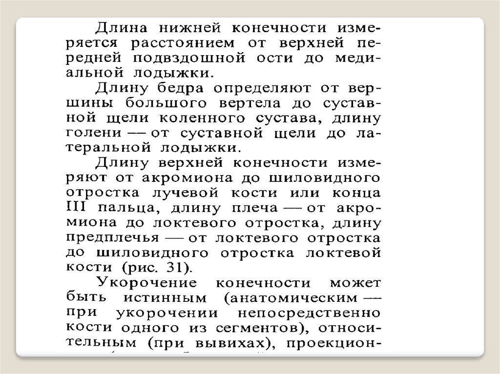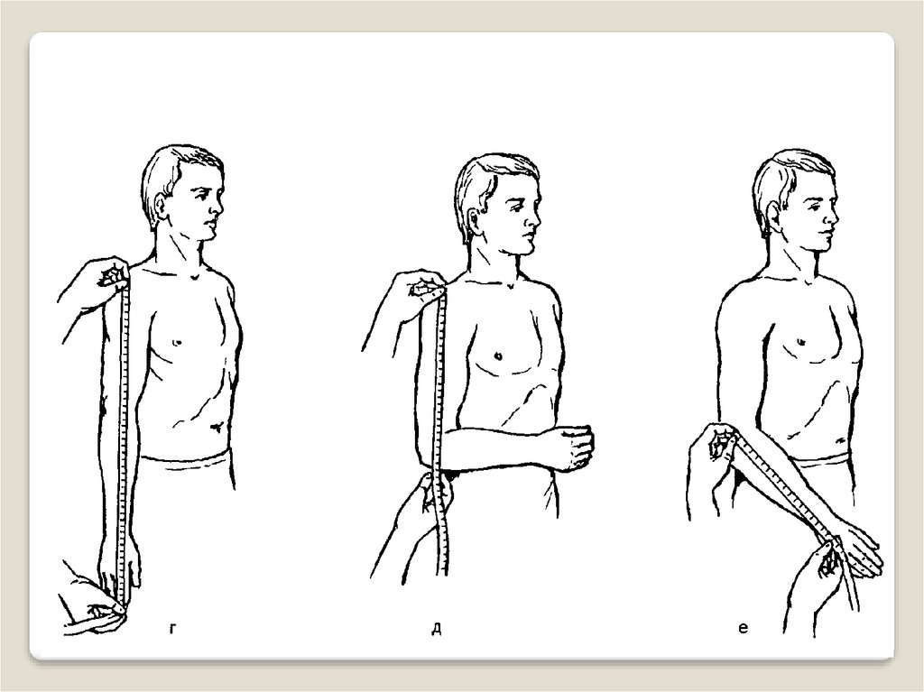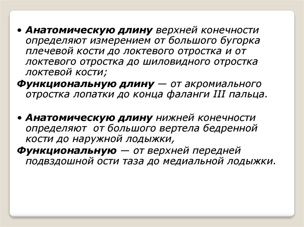 • Анатомическую длину верхней конечностиопределяют измерением от большого бугорка