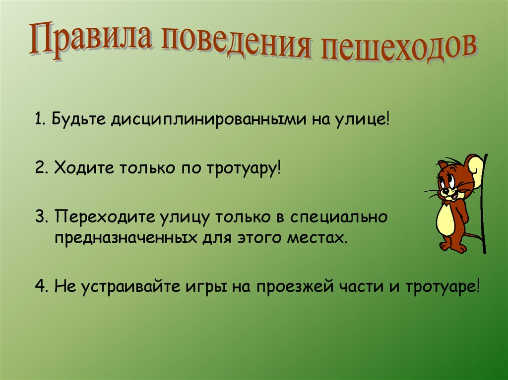 1. Будьте дисциплинированными на улице!2. Ходите только по тротуару!