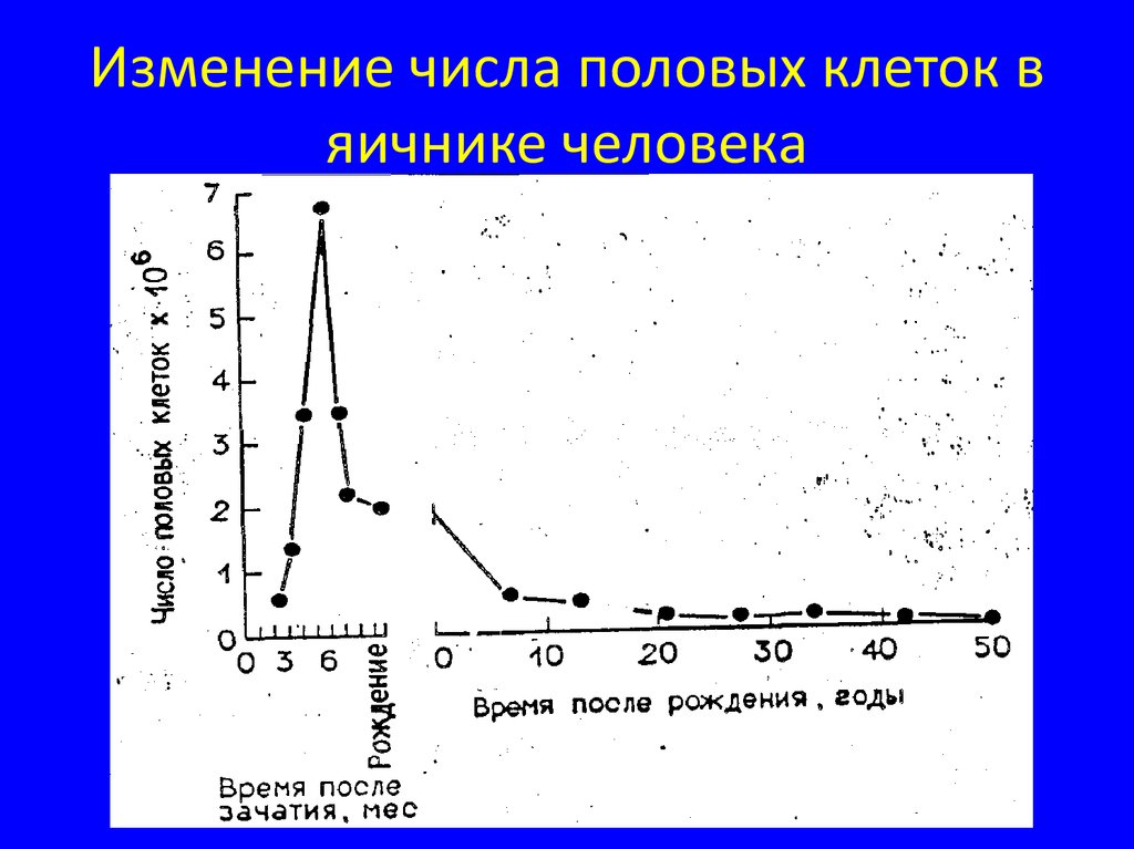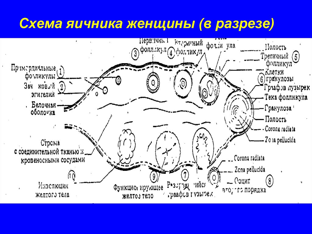 Схeмa яичника женщины (в разрезе)4. Изменение числа половых клеток в яичнике человека