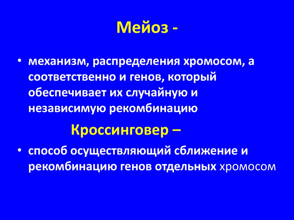 Мейоз • механизм, распределения хромосом, асоответственно и генов, который
