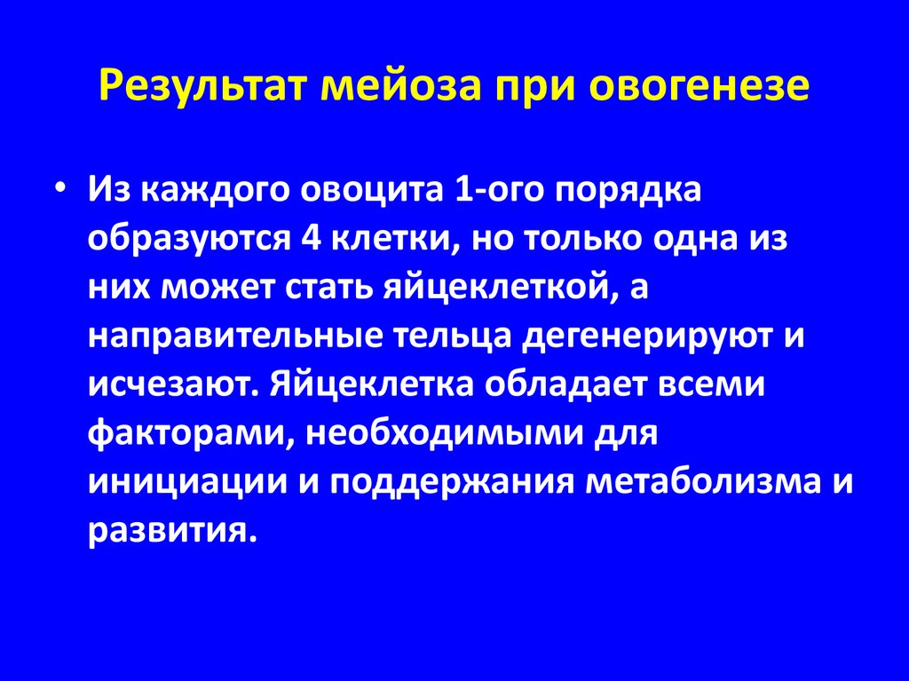 • Из каждого овоцита 1-ого порядкаобразуются 4 клетки, но только одна из