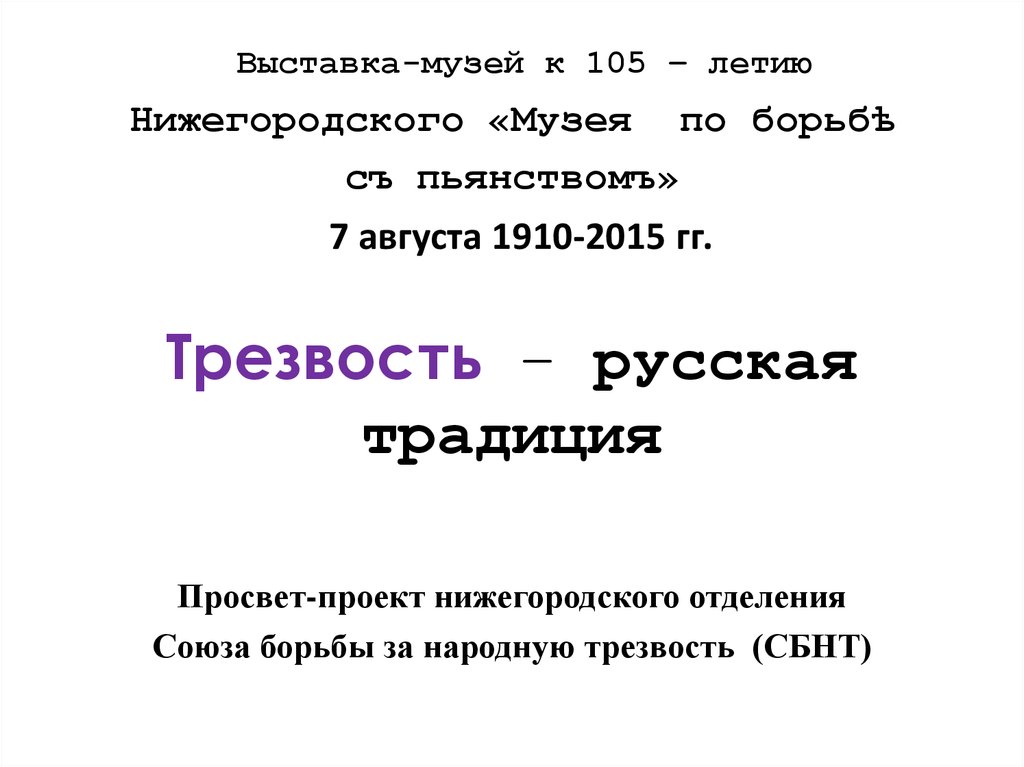 Выставка-музей к 105-летию Нижегородского «Музея по борьбѣ съ пьянствомъ»