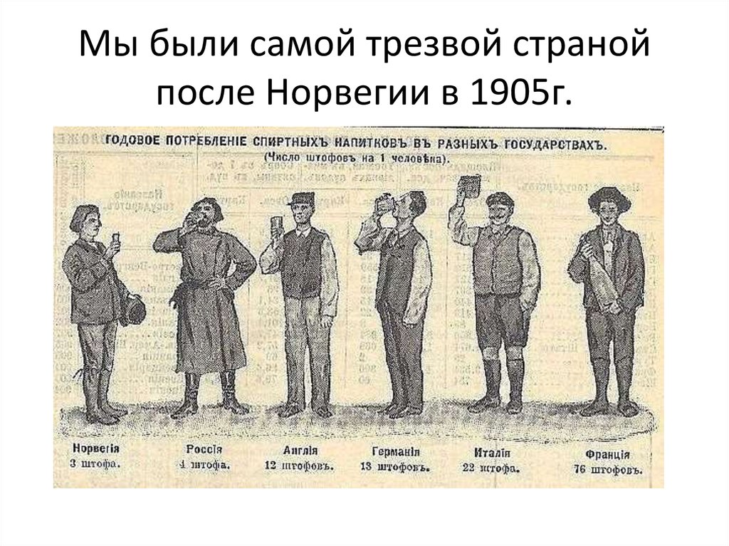 Мы были самой трезвой странойпосле Норвегии в 1905г.