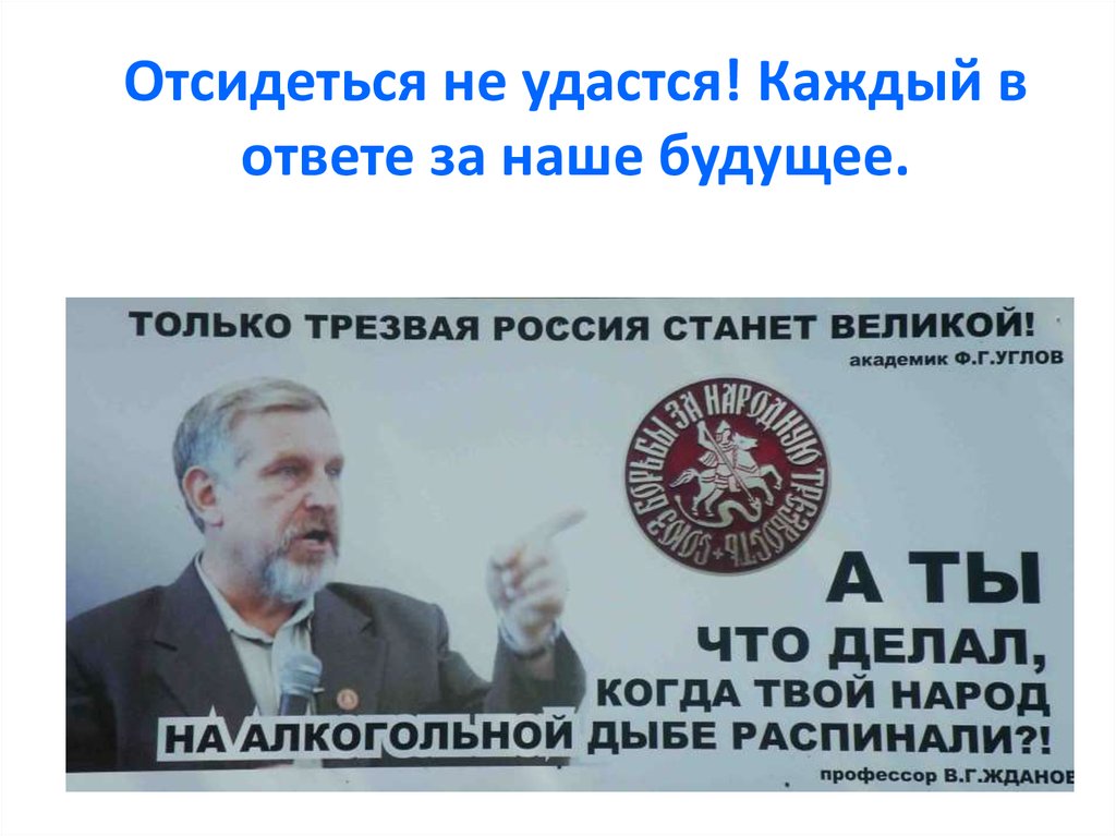 Отсидеться не удастся! Каждый вответе за наше будущее.