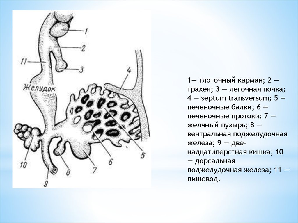 1— глоточный карман; 2 —трахея; 3 — легочная почка;