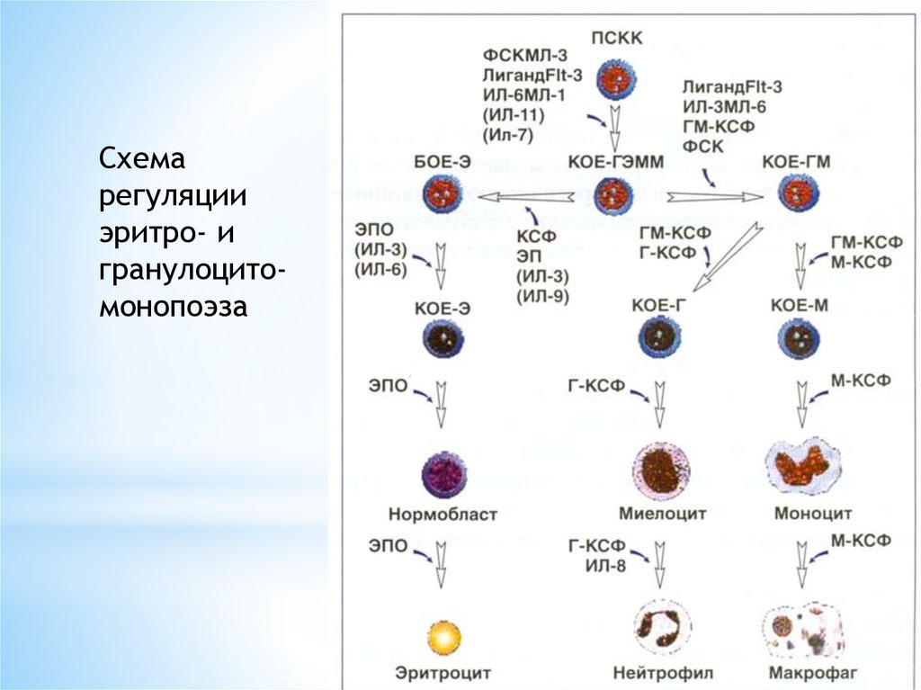 элементов крови: эритроцитов (эритропоэз), лейкоцитов