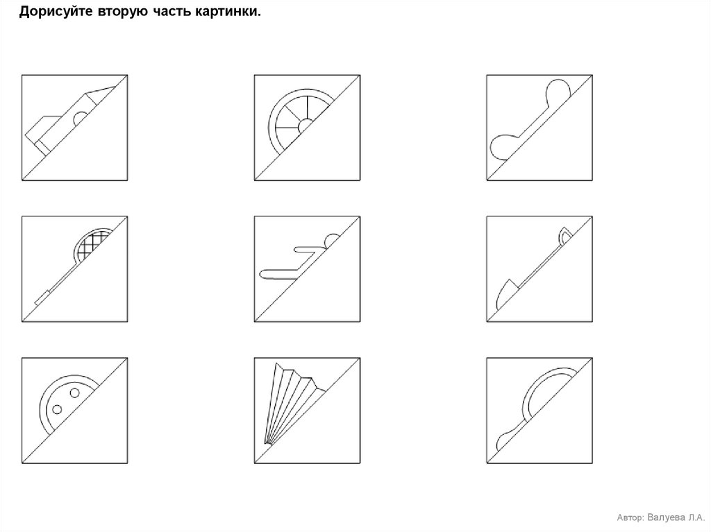 Дорисуйте вторую часть картинки.Автор: Валуева Л.А.