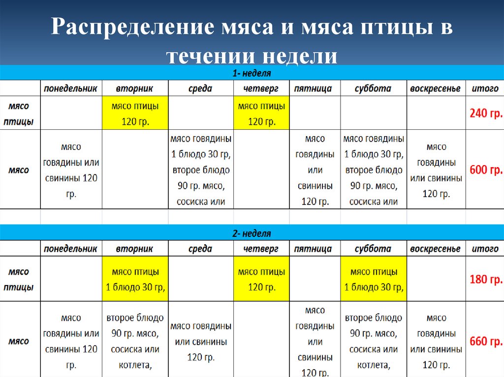 Распределение мяса и мяса птицы втечении недели