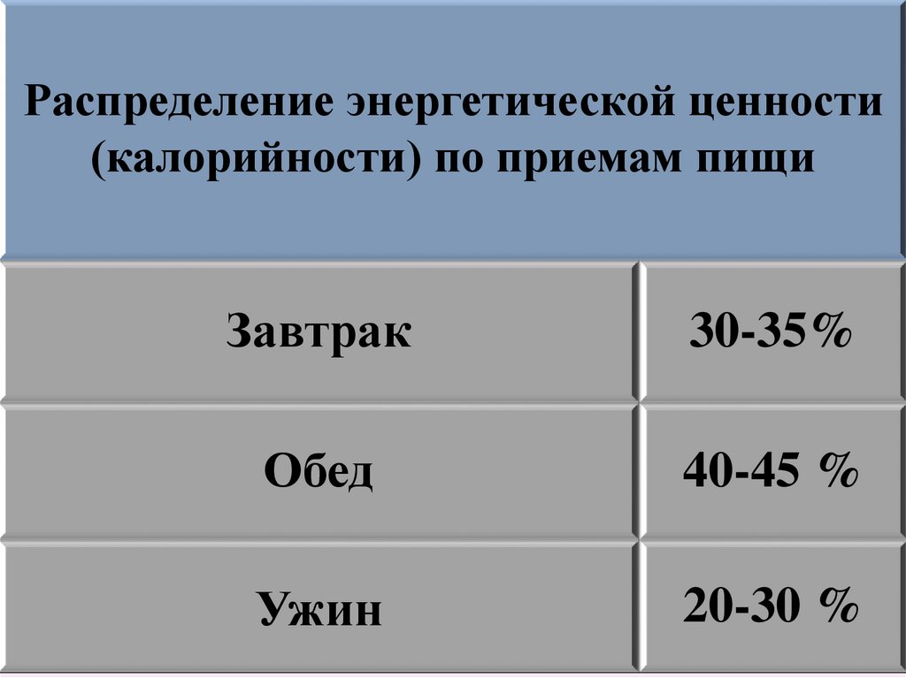 Распределение энергетической ценности(калорийности) по приемам пищи