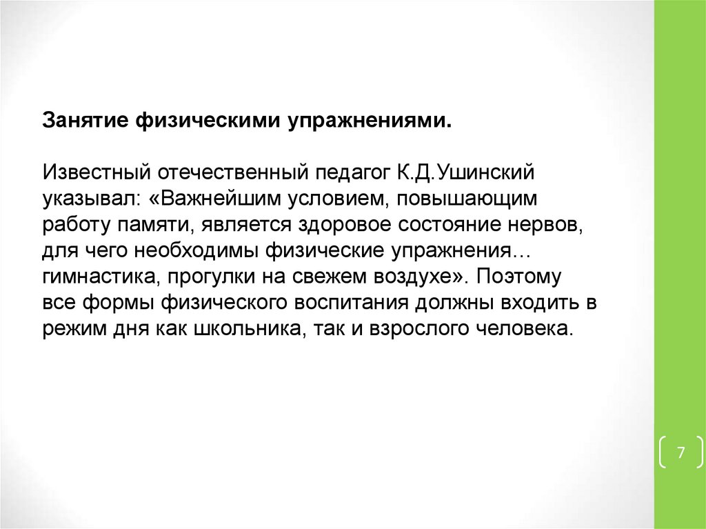 Занятие физическими упражнениями.Известный отечественный педагог К.Д.Ушинский