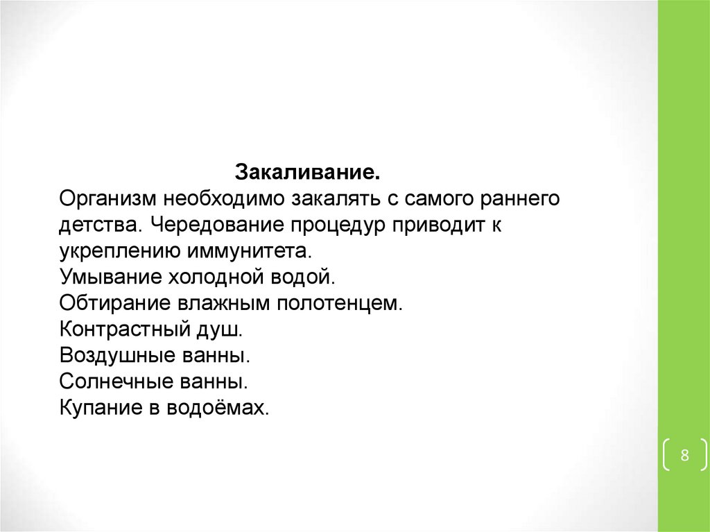 Закаливание.Организм необходимо закалять с самого раннего