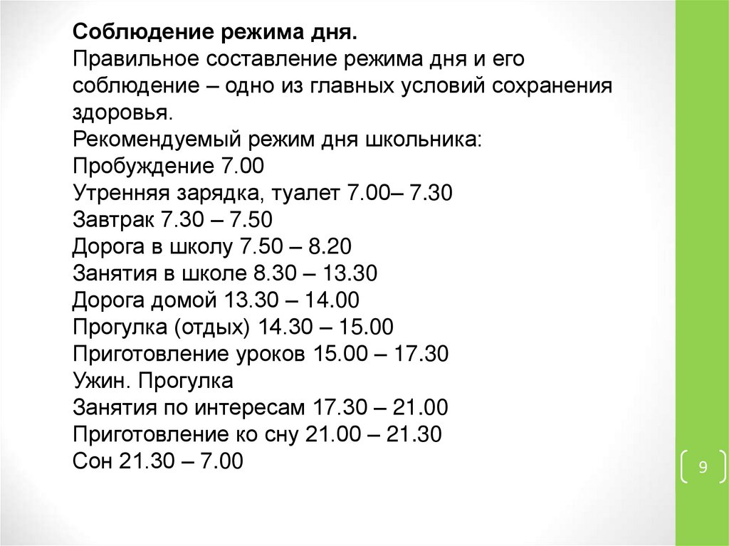 Соблюдение режима дня.Правильное составление режима дня и его