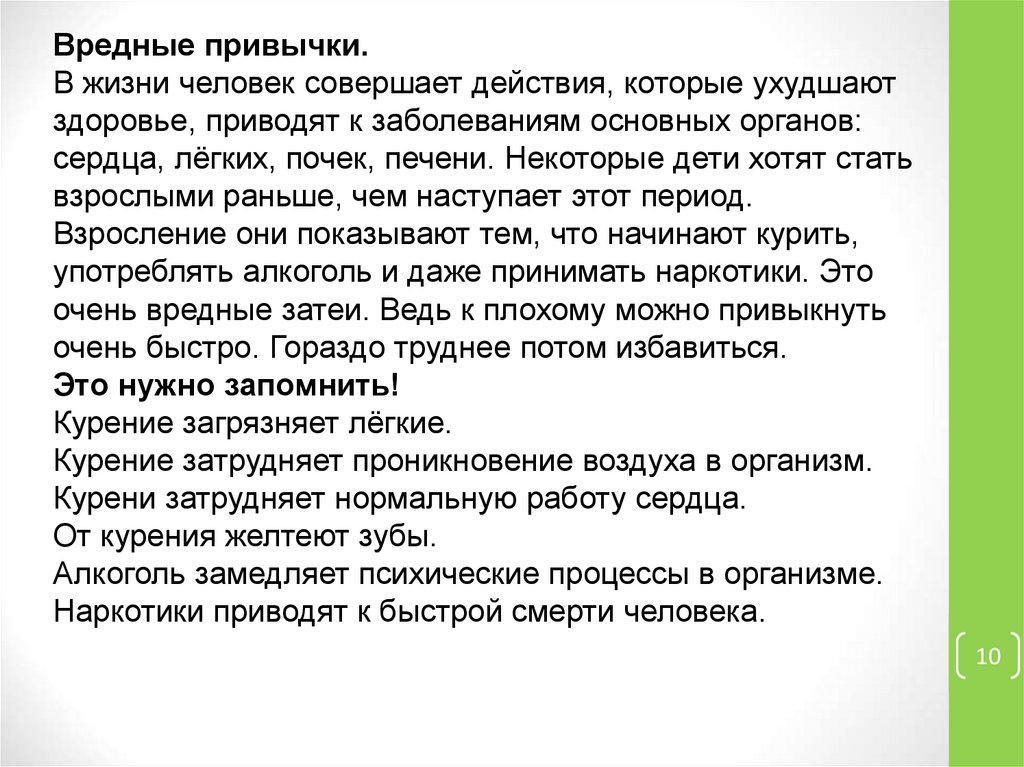 Вредные привычки.В жизни человек совершает действия, которые ухудшают
