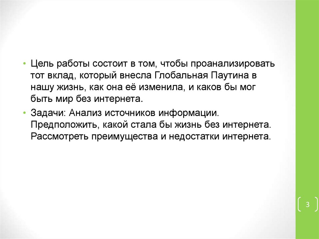 • Цель работы состоит в том, чтобы проанализироватьтот вклад, который внесла Глобальная Паутина в