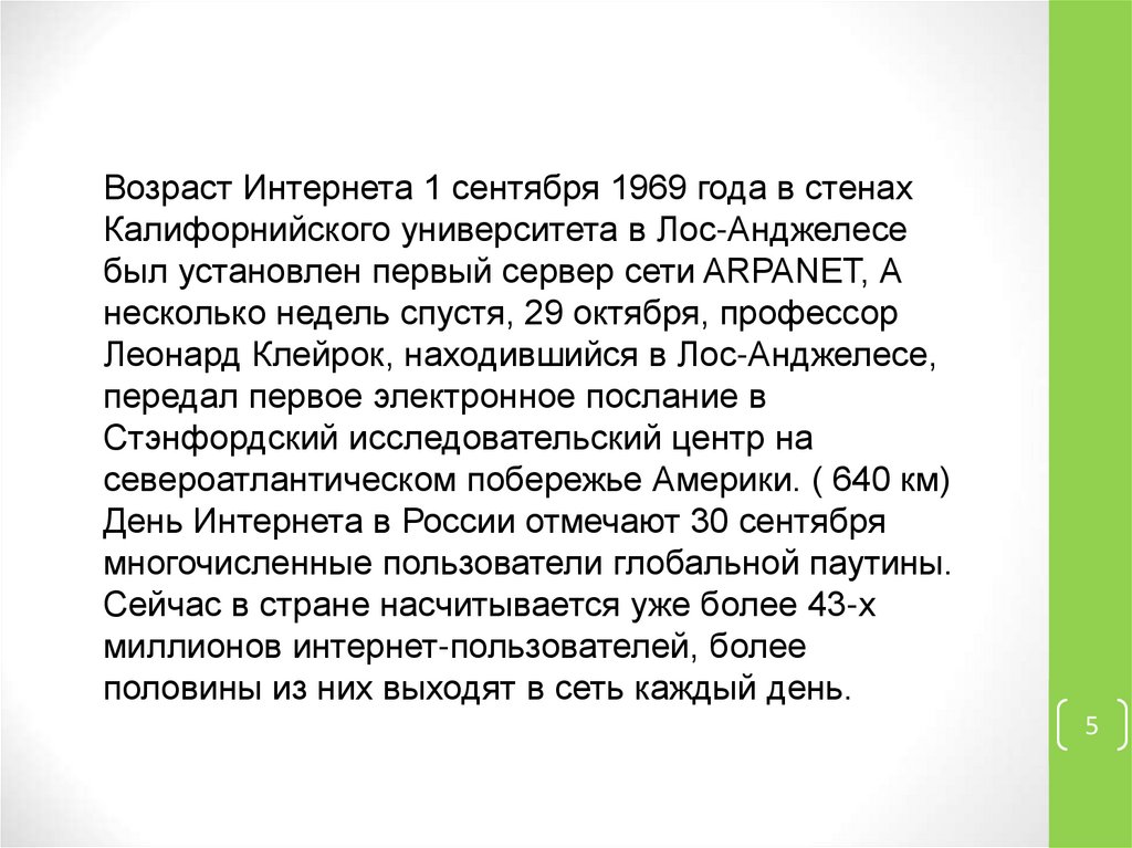 Возраст Интернета 1 сентября 1969 года в стенахКалифорнийского университета в Лос-Анджелесе