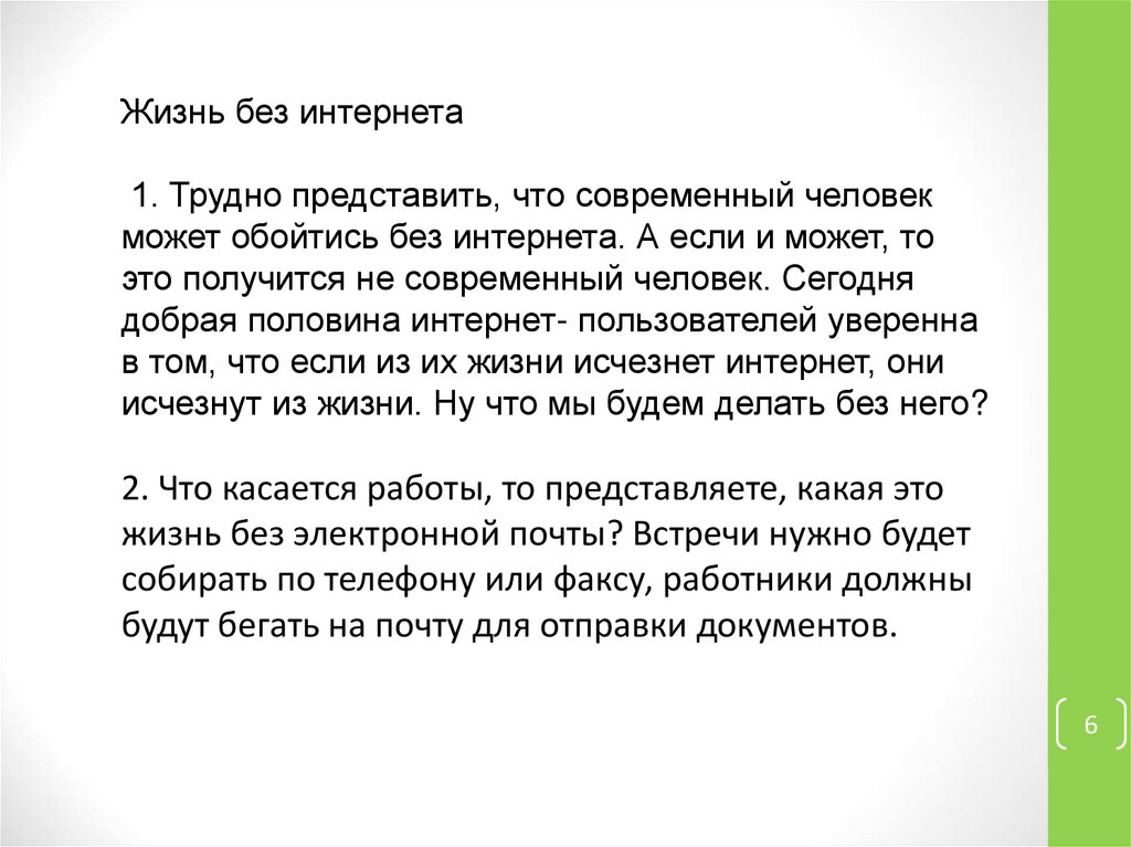 Жизнь без интернета1. Трудно представить, что современный человек