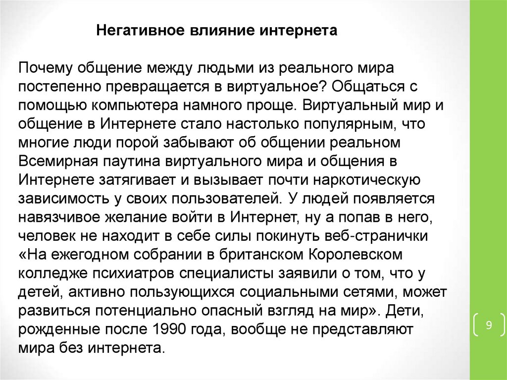 Негативное влияние интернетаПочему общение между людьми из реального мира