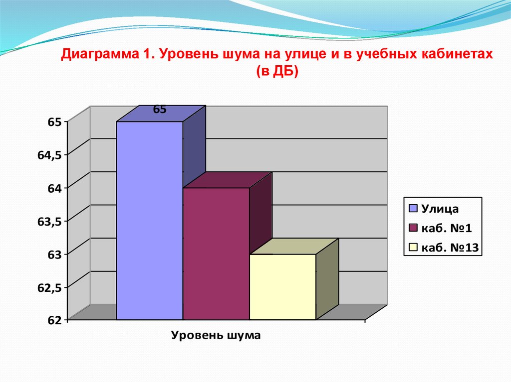 Диаграмма 1. Уровень шума на улице и в учебных кабинетах(в ДБ)