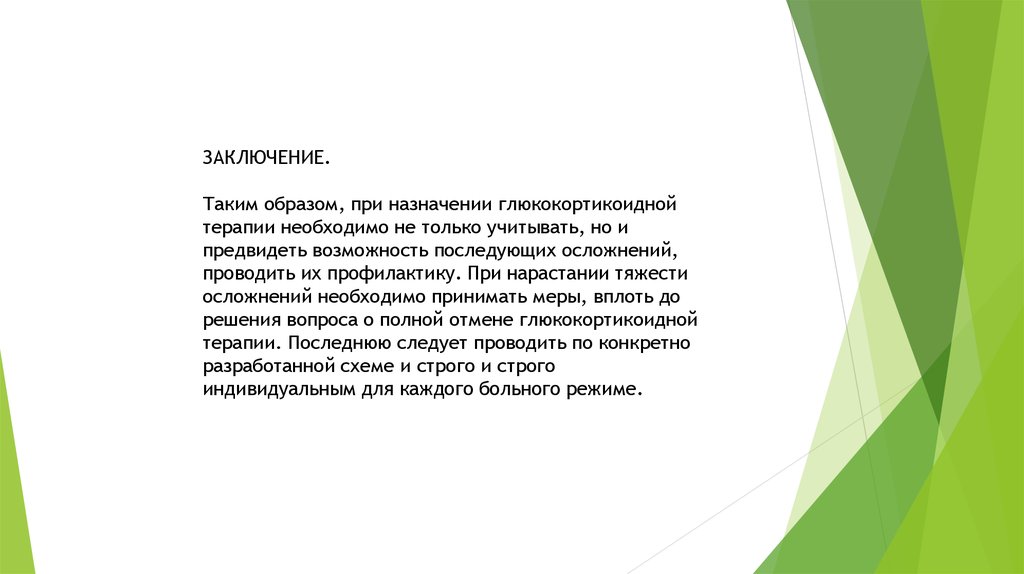 ЗАКЛЮЧЕНИЕ.Таким образом, при назначении глюкокортикоидной