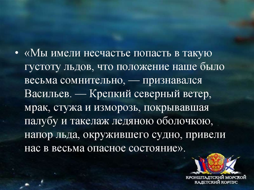 • «Мы имели несчастье попасть в такуюгустоту льдов, что положение наше было
