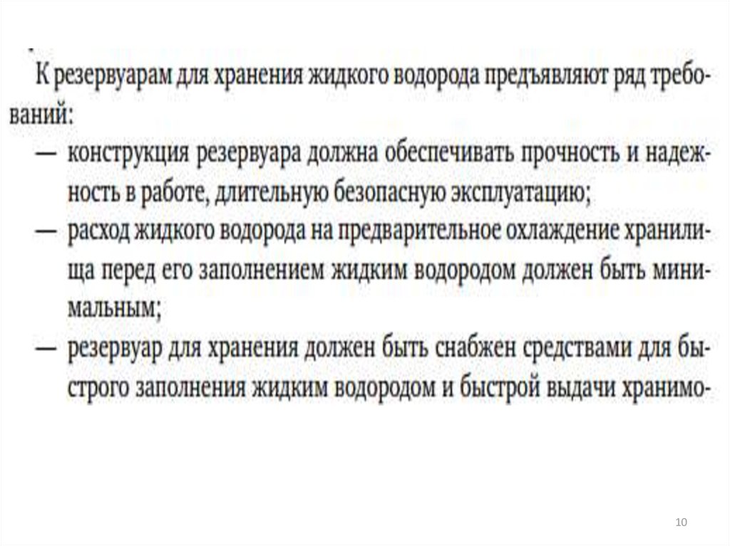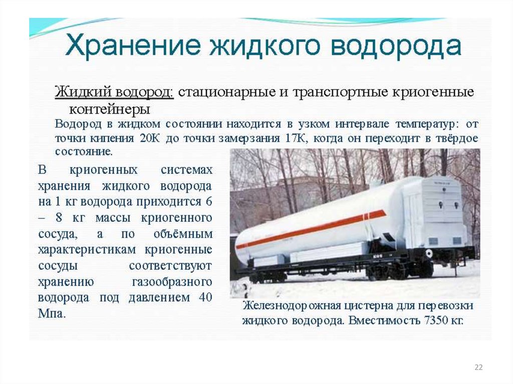 • Жидкий водород: стационарные итранспортные криогенные контейнеры.