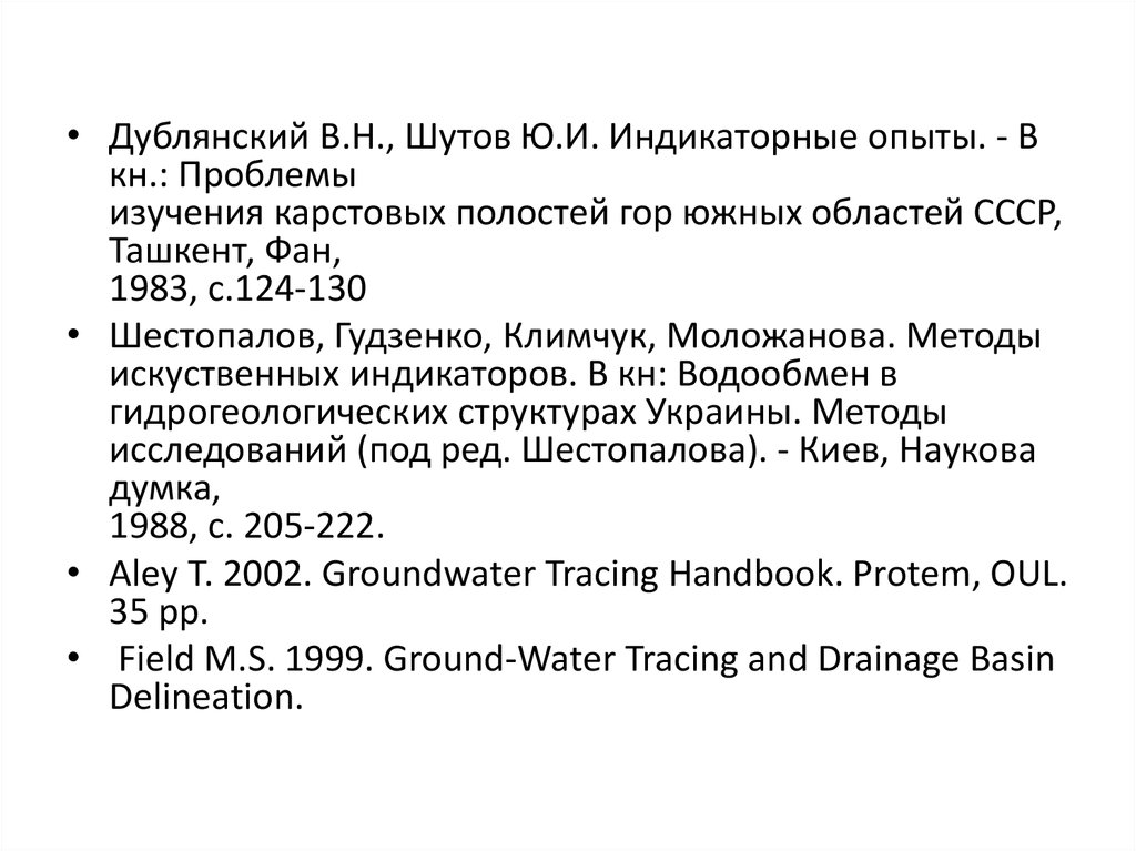 • Aley Т. 2002. Groundwater Tracing Handbook. Protem, OUL.