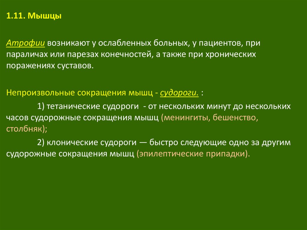 1.11. МышцыАтрофии возникают у ослабленных больных, у пациентов, при