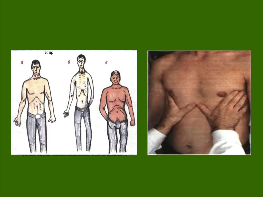 и дрРис. 1.8. Внешнии вид больных с различными конституциональными типами.- анормостеническии тип; б- астенический тип; в- гиперстенический тип. Схема.