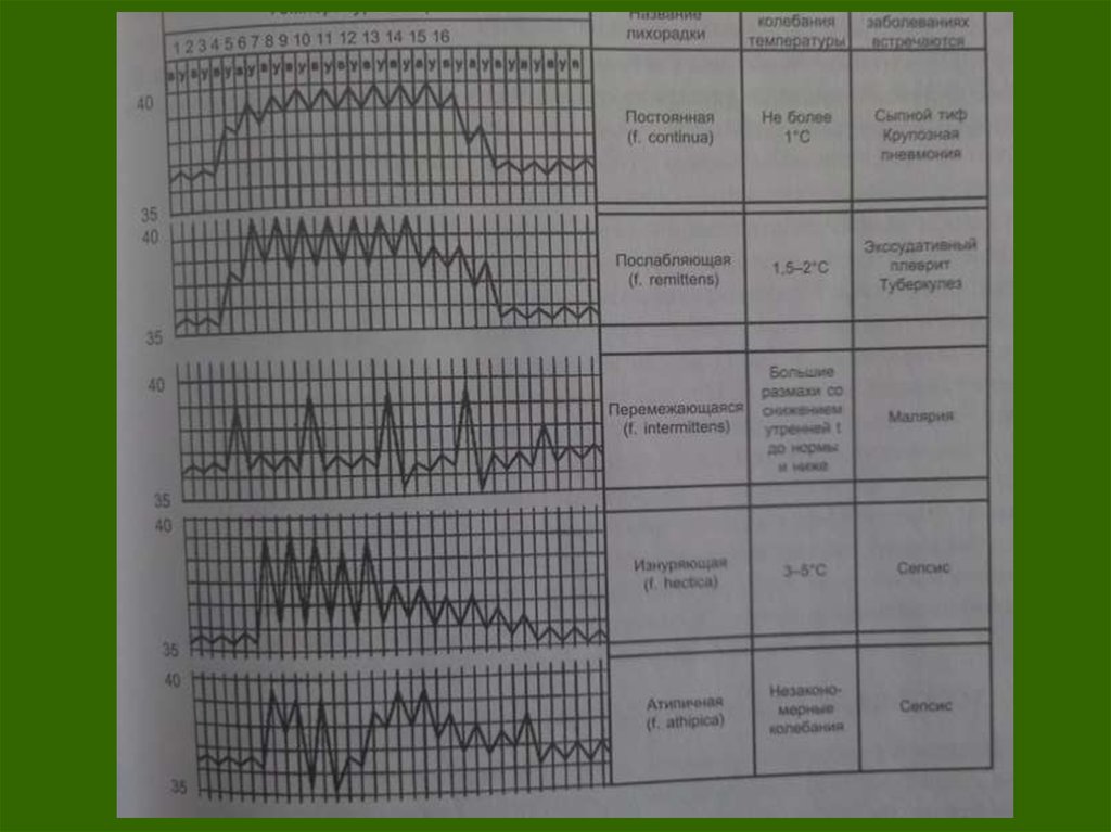 температуры сопровождается выраженными ознобами, а её снижение —