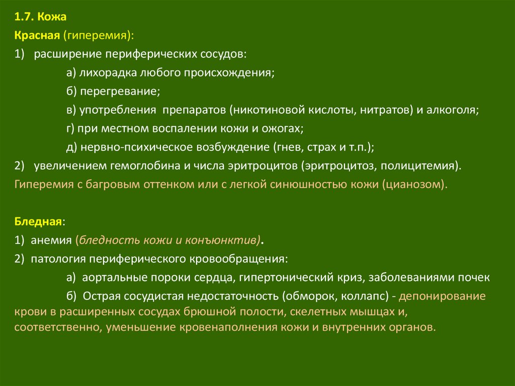 лица, а также оценку состояния кожи, ногтей,
