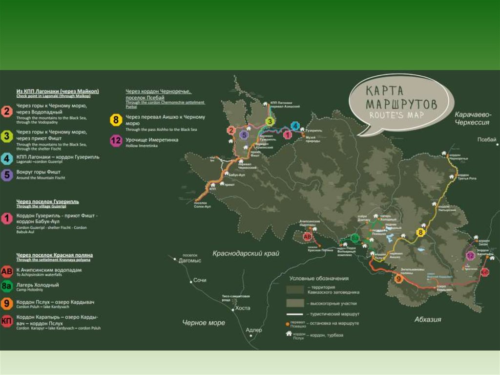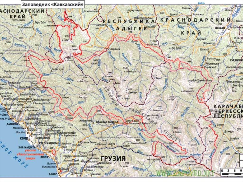 1 – Сочинский национальный парк2 – Кавказский заповедник (КГПБЗ)