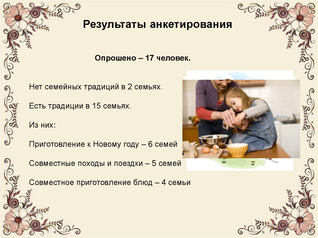 Нет семейных традиций в 2 семьях.