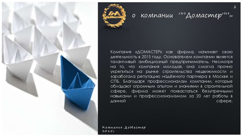 Компания «ДОМАСТЕР» как фирма, начинает свою