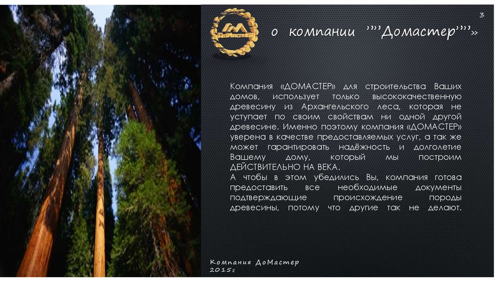 древесине. Именно поэтому компания «ДОМАСТЕР»