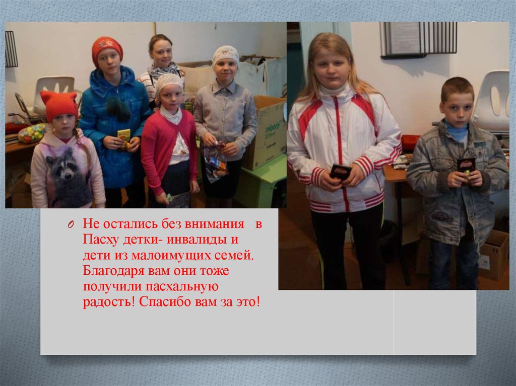 O Не остались без внимания вПасху детки- инвалиды и